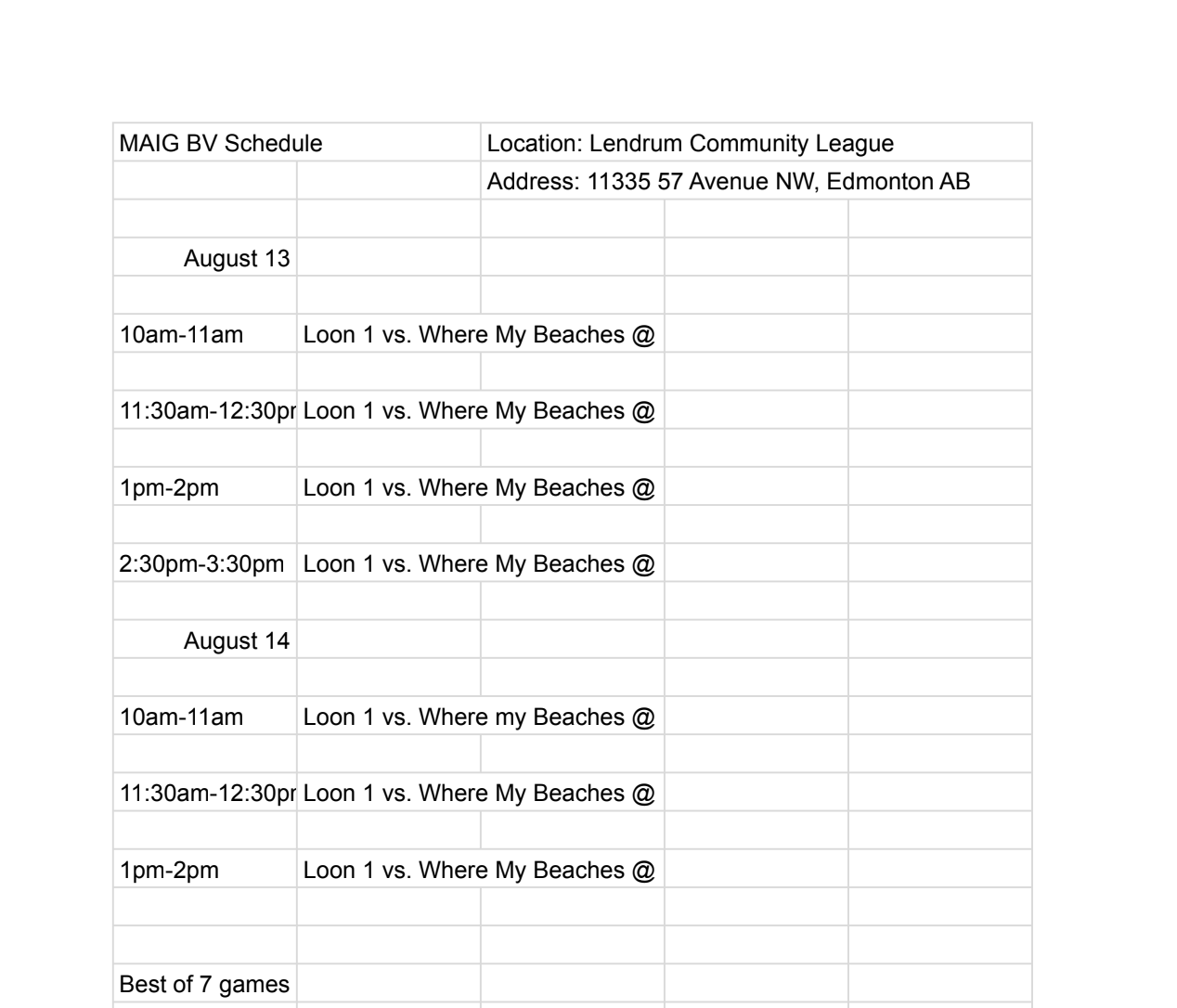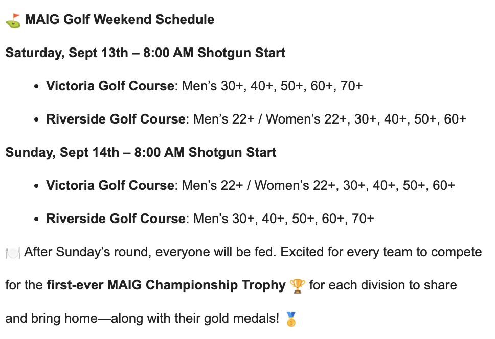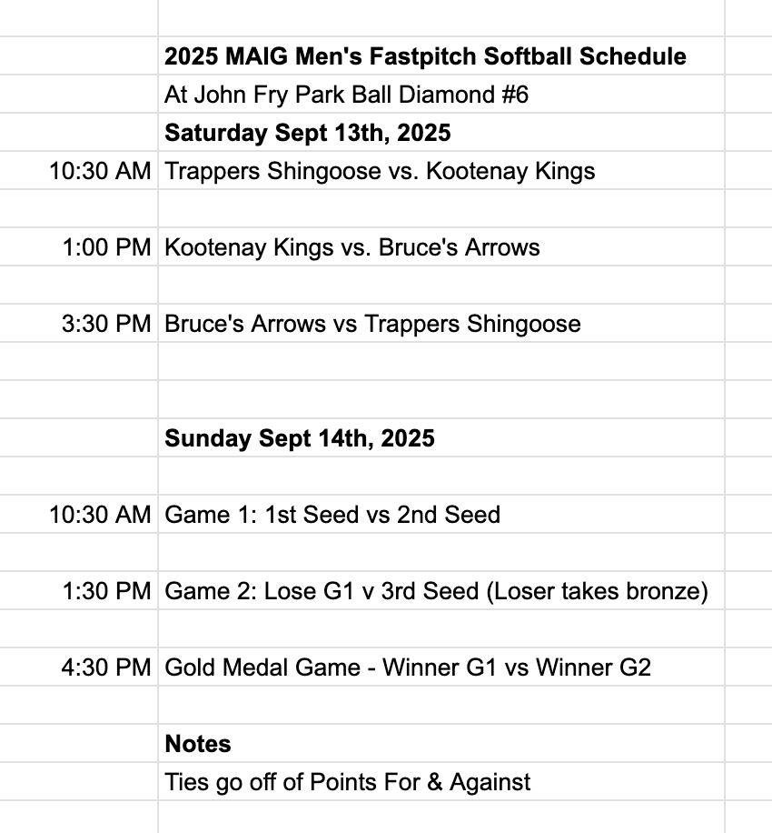 Ball Hockey Schedule: https://bracketteam.com/event/6484/2025_MAIG_Ball_Hockey_Tournament