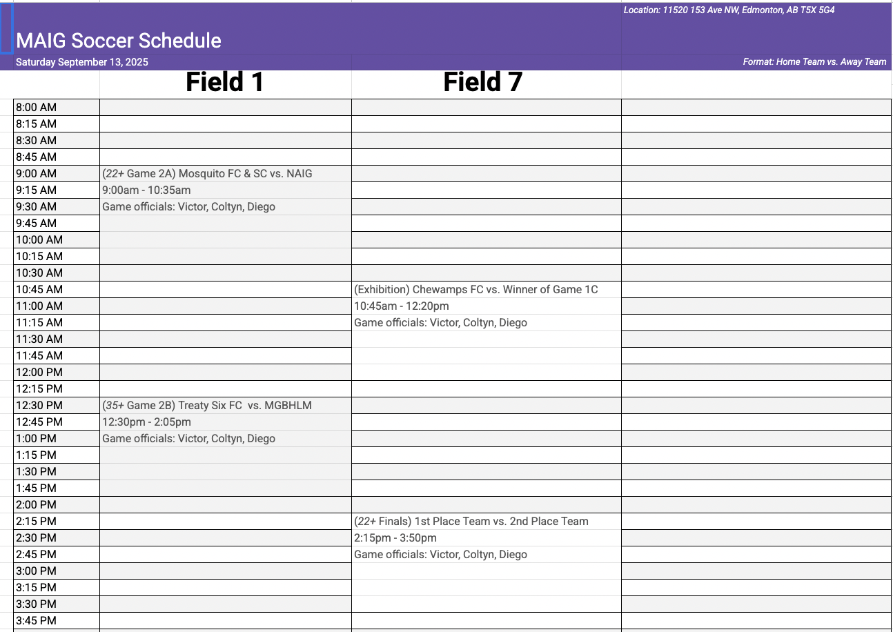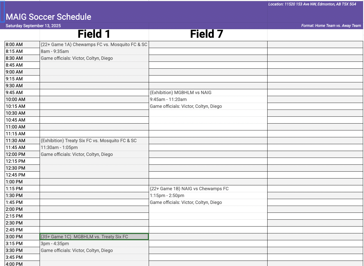 Masters Alberta Indigenous Games Sports Schedules September 12-14th, 2025 Edmonton, Alberta